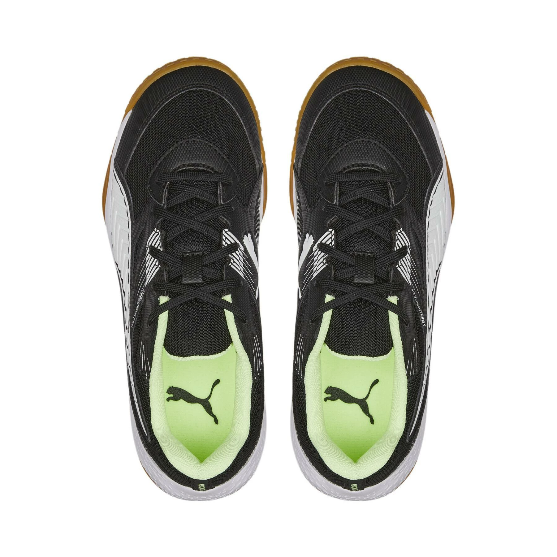 Chaussures indoor enfant Puma Solarflash IIHISTOIRE DU PRODUIT Préparez-vous pour les sports d’intérieur avec la dernière édition de la Solarflash. Elle est dotée de nombreuses caractéristiques qui vous permettent d’être au top de votre forme, notamment un amorti ultra-confortable sous le pied, une stabilité du médio-pied et un soutien de chaque côté du pied, ainsi qu’une matière en maille légère et respirante qui vous garde au frais. DÉTAILS Coupe régulière à largeLa maille Ventair offre légèreté, respirabilité et confortStabilitySkeleton pour une stabilité améliorée de chaque côté du piedNouvelle première de propreté en CMEVA avec soutien de la voûte plantaireMousse à rebond rapide pour un amorti et un retour d’énergie supérieursSemelle intermédiaire en CMEVASemelle extérieure en caoutchouc non marquantBande PUMA Formstrip sur le côté extérieurLogo PUMA Cat sur le côté intérieurPUMA pour enfant et adolescent : recommandé pour les enfants âgés de 8 à 16 ans